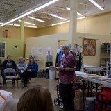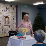 Happy Hands Quilt Club President J'neane Smith leads the monthly meeting for her group in Pocatello, ID.